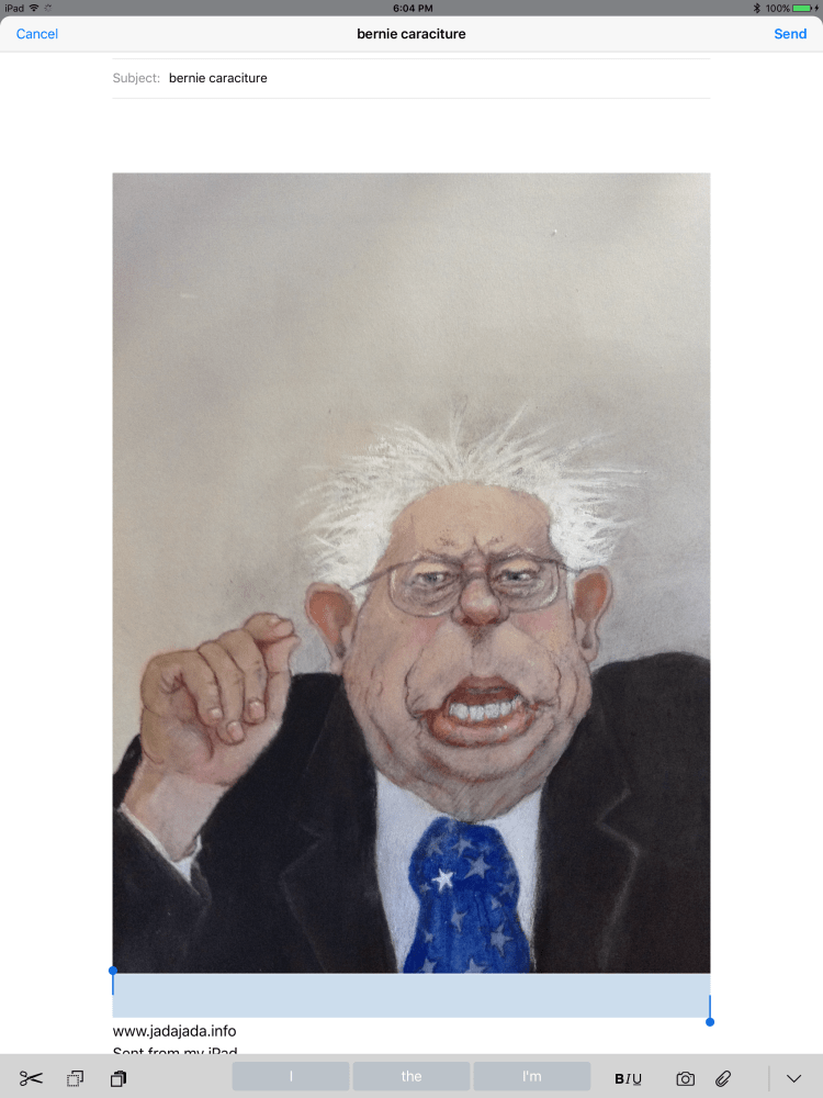 I like Bernie but here’s a not very flattering caricature I created for a pretend Rolling Stone cover in Anita Kunz smART class last year…i usually don’t show work done in a class but this is entirely my own so i am making an exception…as only i can!! ha!!