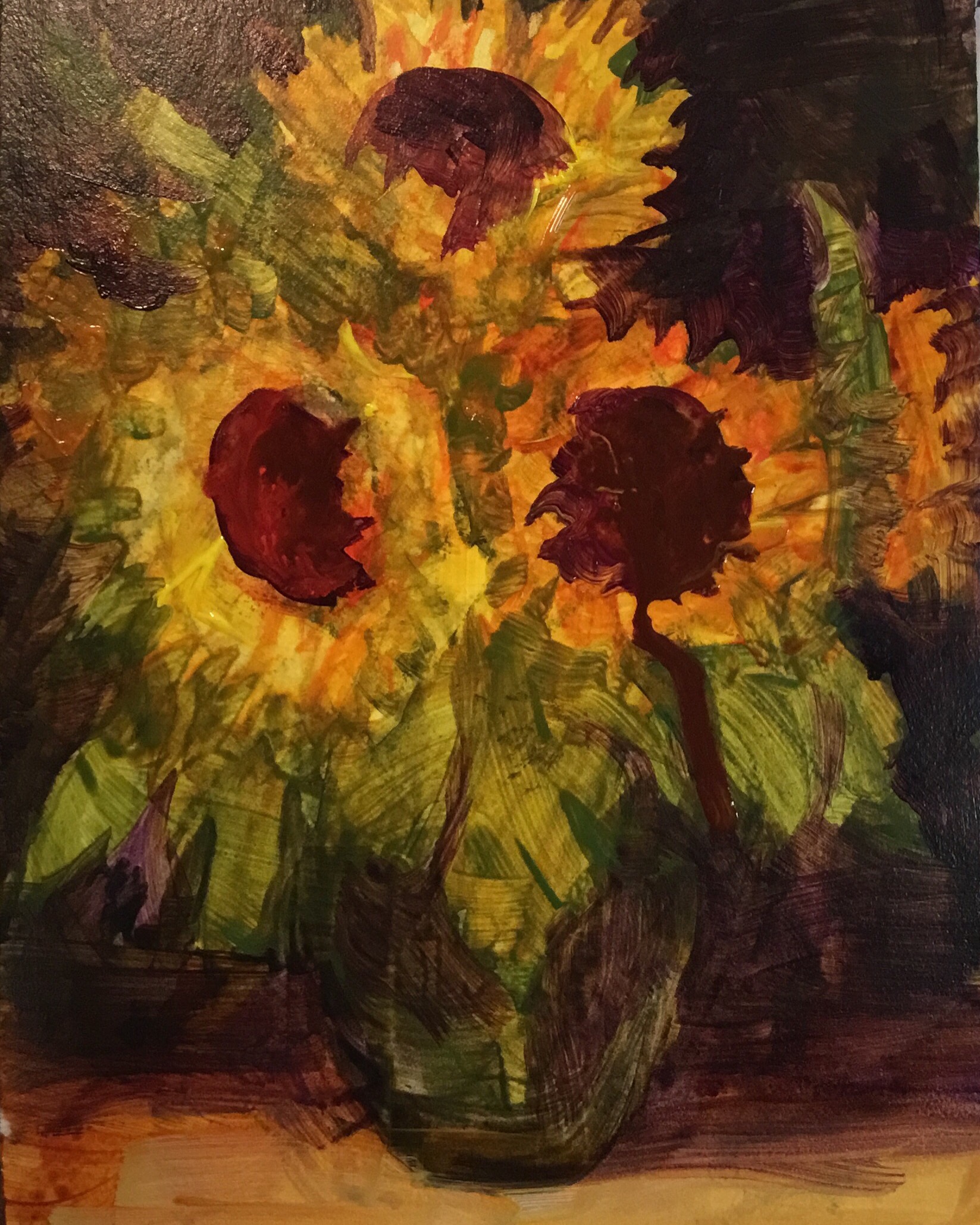 I would do more but bed awaits..and i forgot to fix the charcoal sketch (done on the acrylic gloss medium as i have taken to doing) on illutration board..as a result, the charcoal smeared around and began to make the colors rather depressing so i had to spend too much time ‘lifting’ the smudged color out to bring it back to some life. ah well..tomorrow another one….just noticed..photo has a bit of glare syndrom on the upper left…