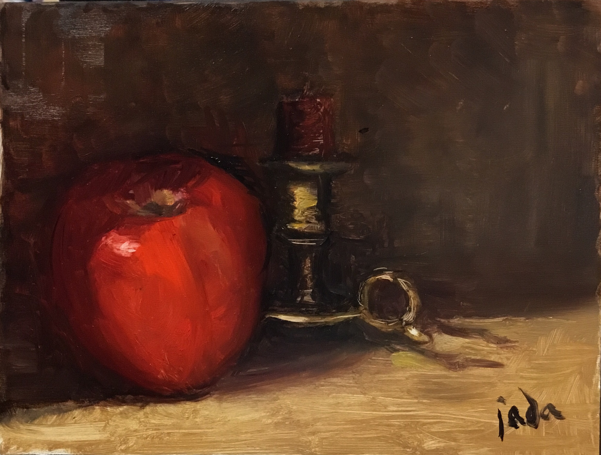 30 in 30 #10…..”One of these a day keeps the ..and..just don’t burn at both ends” (quite a long title for sucha tiny painting.. 6×8 oil on board..back home late and chaos in my studio so not much easier to find the colors i want..and learning to paint with the new eye (with its light flickering problem) and the old eye growing darker and yellower every day…interesting challenge..