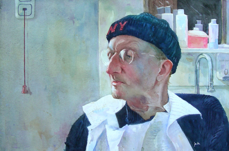 In honor of Sept. 11, I am posting a watercolor painting i did of my brother in his last year. Gregor Rowland was a welder and father of five. He had worked on the upper reaches of the World Trade Building when it was first built. In the high winds, he straddled and welded those girders which held the structure together. Years later, he worked as a welder for the NYC MTA, welding the girders which held up the tunnels and bridges of the subways. So, on September 11th, he was sent down into the ‘pit’ to, at first, try to help by cutting through those same girders, in the hope that rescue was possible and, later, he continued to work to keep the ground from collapsing all those who were working there. He served alongside many others in the pit for twelve weeks and a year later, as a result, he was diagnosed with the lung cancer that killed him not long after. I am sad that we only memorialize those people who worked in the building who lost their lives that day, and not those who lost (and are still losing) their lives in the weeks and years after –as well as all those other peoples, in the US and over the world, who have lost their lives due to a blind or purposeful ignorance and rage which leads to so much senseless loss of life. #9/11,#sept11.#worldtrade,