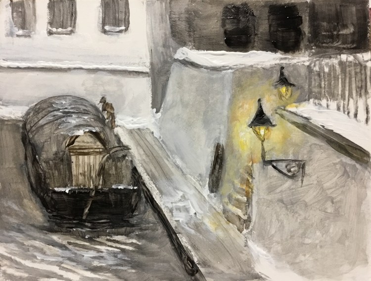 30 in 30 #17 Closing Up – More Snow Coming slow-drying acrylic 6×8 on board by jada. Continuing the Venice or waterways series…using them as part of a book idea.