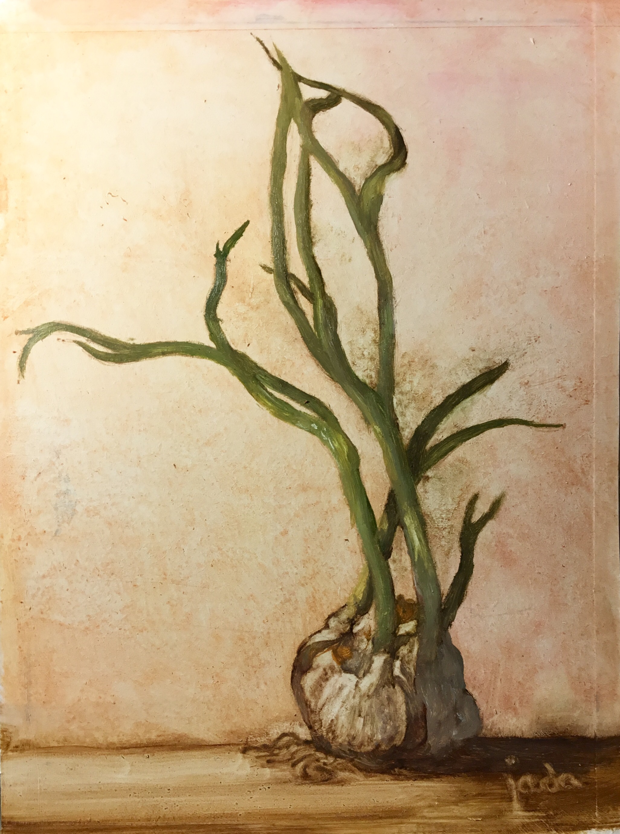 Day 8 6×8 oil by jada #30in30 “Forgotten Garlic” Posted byjadaJanuary 9, 2017Posted inUncategorized Day 8 6×8 oil by jada #30in30 “Forgotten Garlic” ..it is stinking up my studio so it won’t let me forget it now! Click to share on Pinterest (Opens in new window) Pinterest Click to share on X (Opens in new window) X Click to share on Facebook (Opens in new window) Facebook Click to print (Opens in new window) Print Click to share on Tumblr (Opens in new window) Tumblr Like Loading... Related Published by jada Artist, illustrator, Writer, Actor View more posts