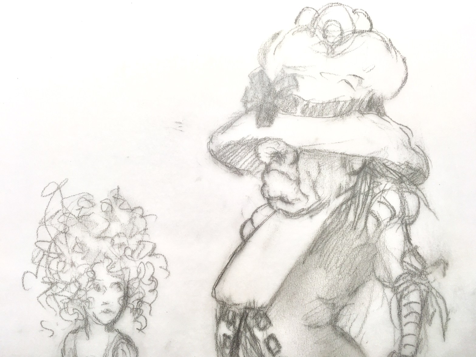 Master Grotto the advocate tries to smile as he looks down on her. Pencil sketch study for one of the characters for my book. By jada